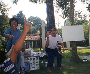 Aduh itu cewe-cewe pada "ngeraba-raba" kaum pria yang lama tidak berjumpa ... wah gawat ... hehehe | "Bakiakers" sedang bersiap untuk adu kompak, sambil menyimak pengarahan dari Bapak Semar Mendem (Yasa) ... |